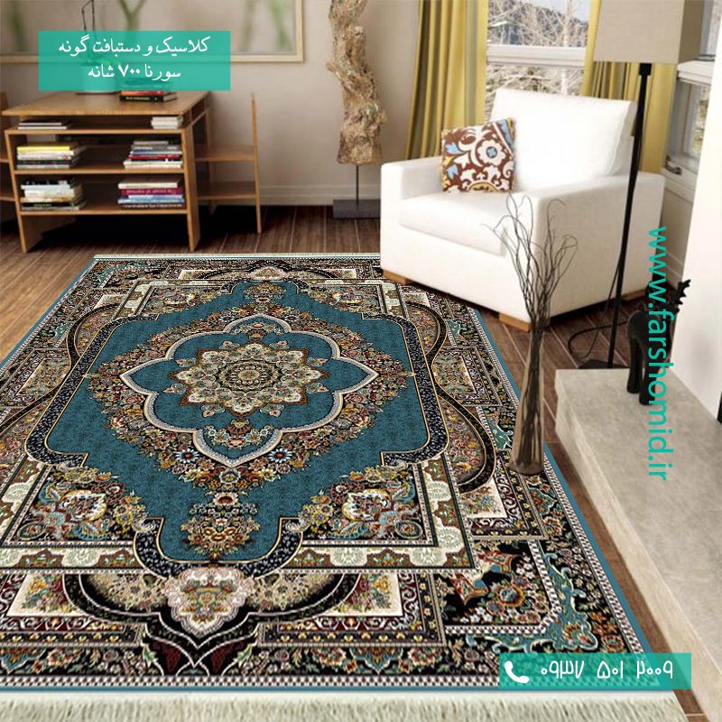 معمولاً فرش هاى دستباف اکثر شهرهاى ایران در سه قالب اصلى به لحاظ طرح بافته مى شوند که عبارت اند از لچک ترنج، خشتى و افشان که در میان آنها لچک ترنج از قدیم مورد استقبال بیشترى قرار گرفته، انتخاب فرش هاى لچک ترنج براى فضاى معمولى و نسبتاً بزرگ بسیار مناسب است و برای پذیرایی و اتاق نشیمن که وسط آن لوستری آویزان باشد معرکه هستند. از طرفی طرح افشان جدیدترین سبک به حساب می آید. طرح افشان به بزرگتر نشان دادن فضا کمک میکند و دکوراتورها همواره فرش هاى با طرح افشان را براى فضا هاى کوچک توصیه مى کنند. اگر به معماری و طراحی های قدیم ایران علاقه مند باشید، طرح خشتی بیشتر همسو با سلیقه شما خواهد بود. ایرانیان باستان پیشتر از طرح های متقارن و چهارگوش، یا لوزی در طراحی بناهای مهم شهر استفاده می کرده اند البته به خواطر داشته باشید طرح های خشتی فضا را کوچکتر نشان میدهند. طراحی این فرش از نوع لچک ترنج می باشد ولی اگر شما این طراحی را دوست ندارید جای نگرانی نیست با توجه به طیف وسیع طراحی موجود، حتما از سایر فرشهای 700 شانه سورنا طرح مورد نظر خود را خواهید یافت.