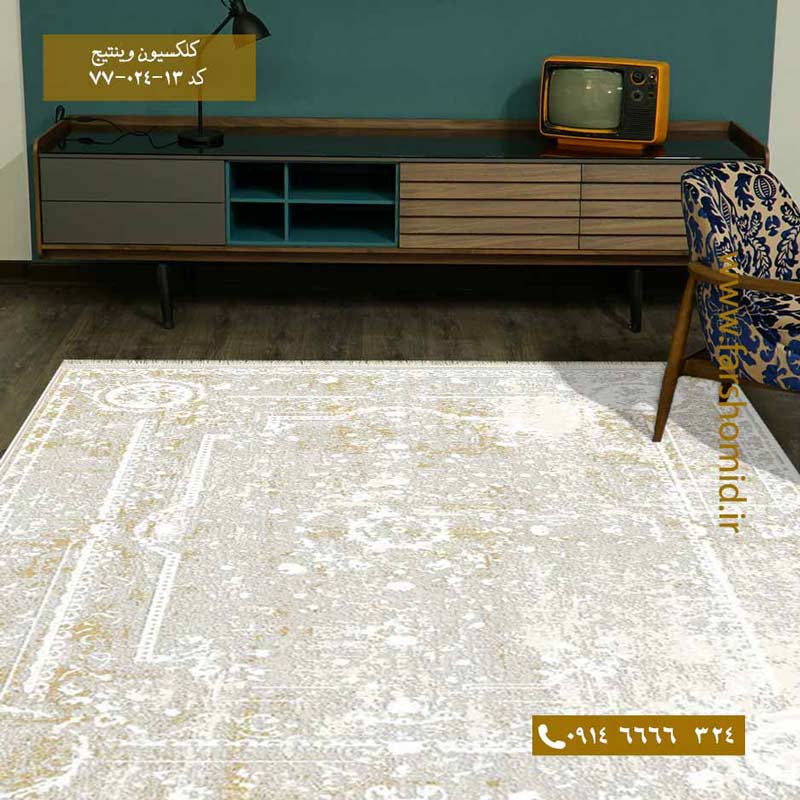 فرش وینتیج کد 7702۴13 کرم طلایی فرش برنتین